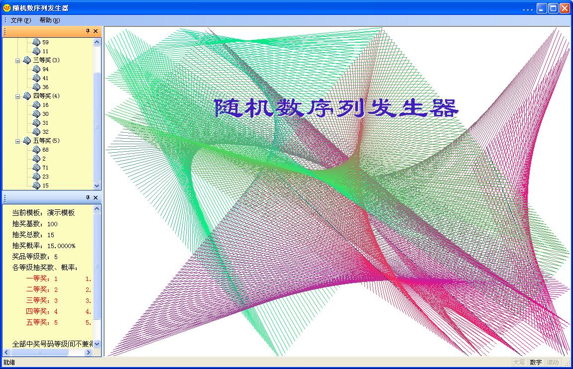 《隨機(jī)數(shù)序列生成器》 本程序可以應(yīng)用在抽簽、抽獎(jiǎng)等類事務(wù)或活動(dòng)過(guò)程。比如商業(yè)經(jīng)營(yíng)促銷抽獎(jiǎng)、汽車購(gòu)買指標(biāo)搖號(hào)、各類保障性住房配租售、分發(fā)物品隨機(jī)編號(hào)等等。具體應(yīng)用可以通過(guò)設(shè)計(jì)不同類型模版實(shí)現(xiàn),方便靈活。只要是和隨機(jī)數(shù)相關(guān)的應(yīng)用均可,創(chuàng)造性應(yīng)用在于用戶利用模版的設(shè)計(jì)方法。使用說(shuō)明書(shū)只是對(duì)商業(yè)活動(dòng)應(yīng)用作了重點(diǎn)描述,其他應(yīng)用類似。歡迎到本站【下載專區(qū)】下載安裝程序。本公司長(zhǎng)期致力于公益性應(yīng)用程序開(kāi)發(fā),敬請(qǐng)......[查看詳細(xì)]